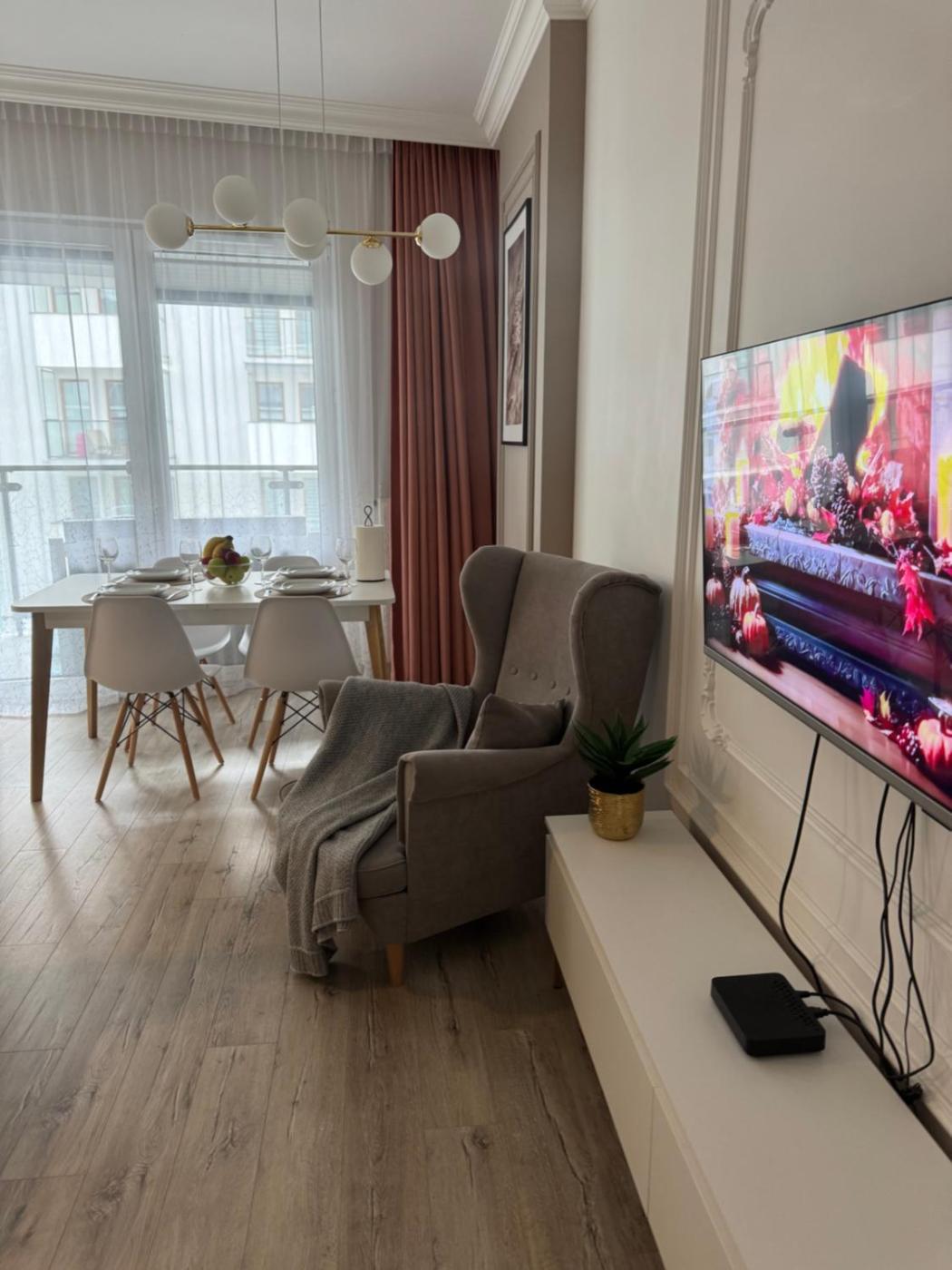W apartamencie do dyspozycji gości przygotowano balkon, sypialnię (1), salon oraz kuchnię z doskonałym wyposażeniem.